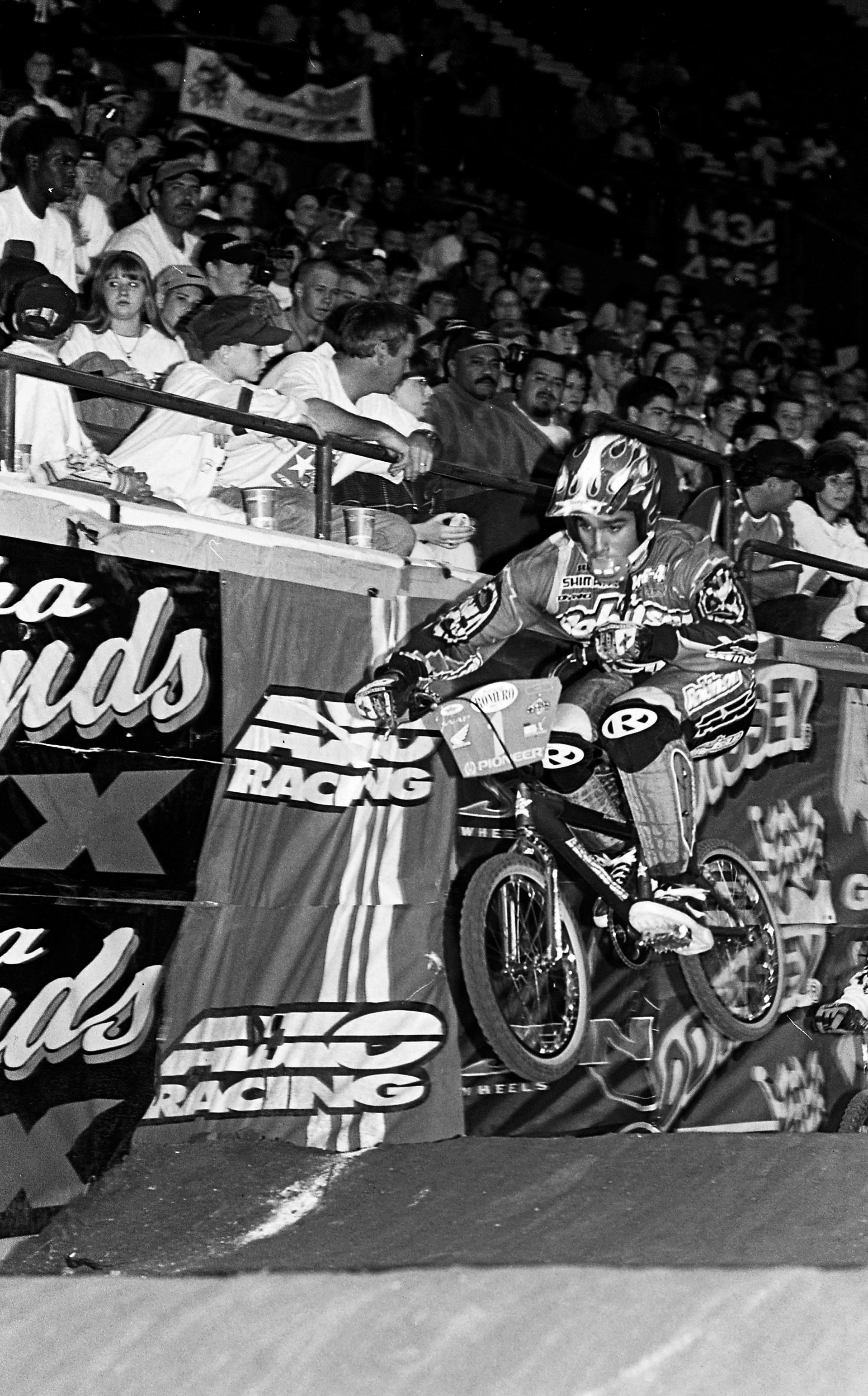 Over the next decade, Greg spent seven of those years riding for The Firm - working his way up from Auburn, to Robinson and finally GT. He won the first-ever ABA Monster-Cross series in ‘97, which awarded him the overall prize of a Honda motorcycle and won a second ABA World Cup that same year. Always in the hunt for a No.1 Pro title, Greg is owner of one of the most impressive Grands records; winning the ABA Grands in ‘96 and making seven Grands mains out of his 12 attempts.