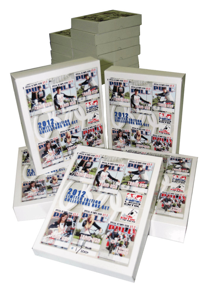 SPECIAL OFFER: USA BMX Racewear has just received 100 box-sets of PULL magazine's special Olympic Edition. Each set comes with all six Olympic magazines, each with a different Olympian on the cover. Each box set is hand-numbered (1 thru 10