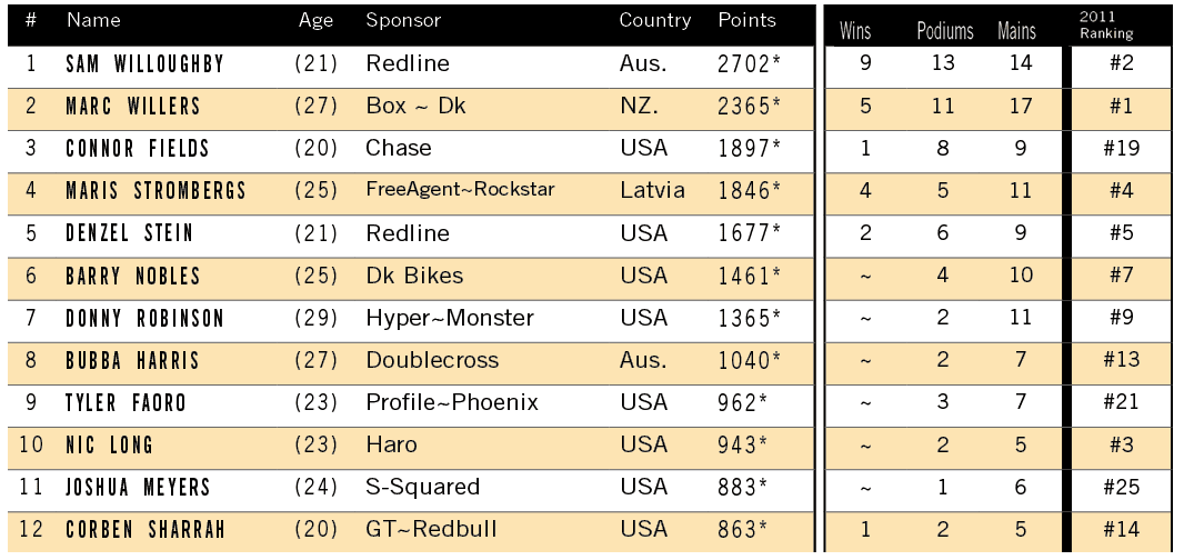 It's been a long, rough year for our sports' most Elite athletes - and this charts pretty much tells the story, as we head toward Tulsa, OK and Saturday night's Pro Spectacular battle for the first ever USA BMX No.1 Pro title.