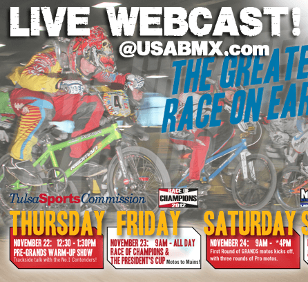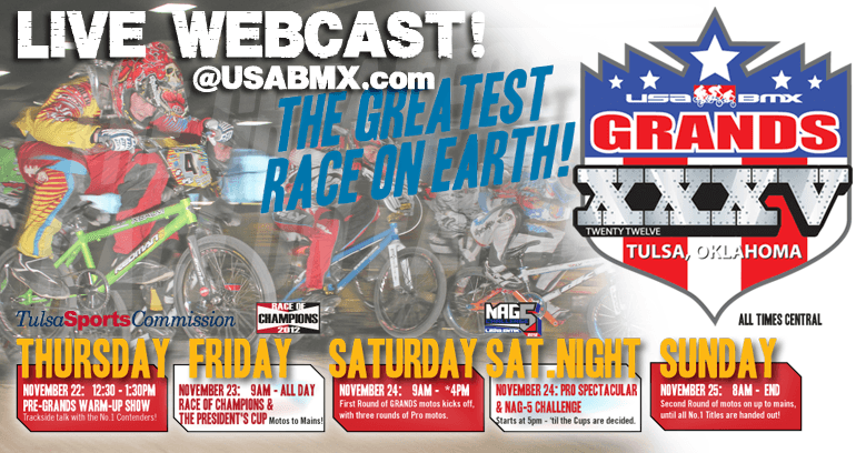 It has now been confirmed! USABMX.com will be hosting the live webcast of this years' USA BMX GRANDS. The webcast kicks off on Thursday afternoon with a Pre-GRANDS Warm-Up show. Be sure to catch trackside interviews from the No.1 Champions podium with many of the No.1 title contenders.