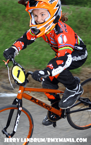 Challenge Level - Girls Girls 5-7: Valentina Vargas (Lehigh Acres, Fla.) Girls 8: Grace Stevenson (Gilbert, Ariz./Redline Challenge) Girls 9: Salem Robertson (San Antonio, Texas/Hostile-Bombshell) Girls 11: Jamie McHenry (Angier, N.C./Answer-Rennen) Girls 12: Jordan Scott (Henderson, Nev./Redman-Rockstar) Girls 13: Anna Johnson (Garland, Texas/Factory Crupi) Girls 14: Abagayle MacLeod (Winchester, Va./Answer-Rennen) Girls 15: Shayla Blackmore (Durango, Colo./Phoenix Factory Racing) Girls 16: Jamie Windholz (Centerview, Mo./Factory Ssquared-Answer) Girls 17+: Kristen Bob (Plano, Texas/Alltow Wrecking Crew-Yes)