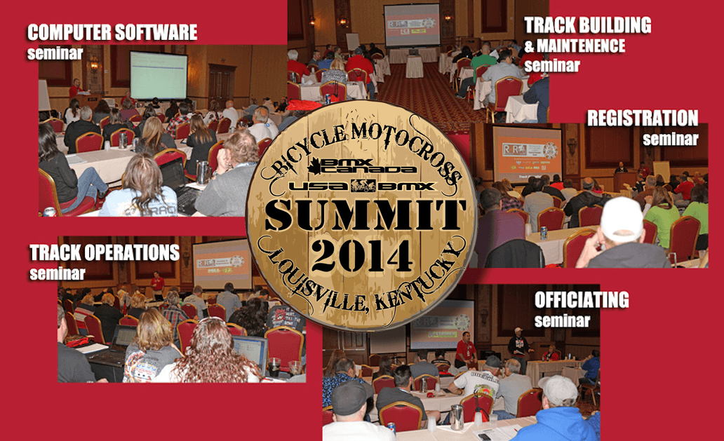 2014 USA BMX Summit will convene on Thursday, February 20, with registration beginning at 3 pm. The Opening Ceremony will start at 5 pm on Thursday, followed by the first General Session covering Track Management/Marketing. Additional General Sessions will be held covering Ranking and Points Programs along with what's New for 2014. Seminars will be conducted covering Track Operations, Registration, Computer Software, Officiating, Track Building, Preparation and Maintenance.