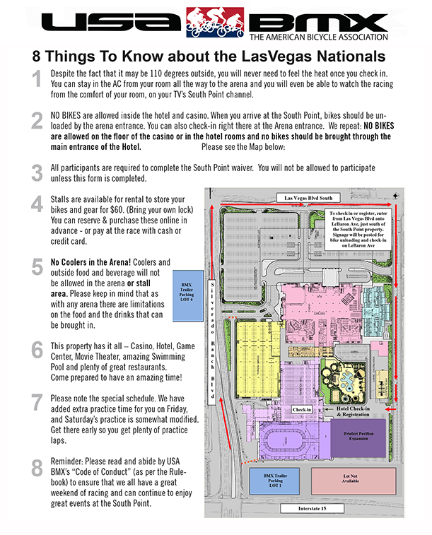 The South Point Hotel & Casino, along with USA BMX, hopes you have an incredibly fun experience in Las Vegas - and wishes you and your children the best of luck out there on the track!