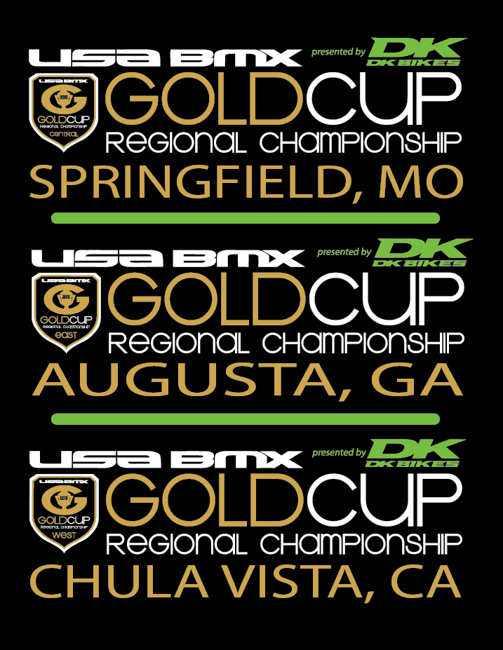 USA BMX is pleased to announce the host cities for the East, Central and West Gold Cup Championship series - presented by DK Bikes. It is at these regional finals where racers of all ages and skill levels will be competing for the title of USA BMX Gold Cup champion.