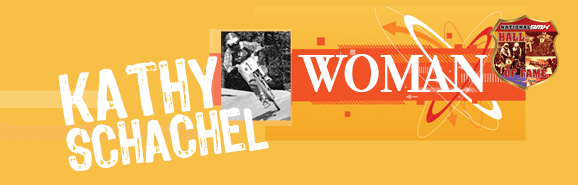 Back in a time when the girls division was still referred to as "Powder Puffs," there was one particular girl whose speed and style set the standard for the future of the Pro Womens class. Her name was Kathy Schachel and under the guidance of her New Jersey mentor - the late, great Hall of Famer Charlie Litsky, she became a partof the Shimano factory team and went on to tally up an impressive 55 career wins. Amongst all of those victories came 3 NBL National No.1 titles, two World Championships and even a European Championship. Upon her urging, she lead the formation of the World's first Womens Pro class in 1985 - and then proceeded to earn the NBL No.1 Woman Pro title in its first two years. The fact that Kathy was rad enough to roost all over the November 1979 issue of BMX Plus stands alone - as she set the tone for future generations of girl racers, showing them that girls can not only jump and get rad like the boys, but sometimes ... you can even beat 'em!