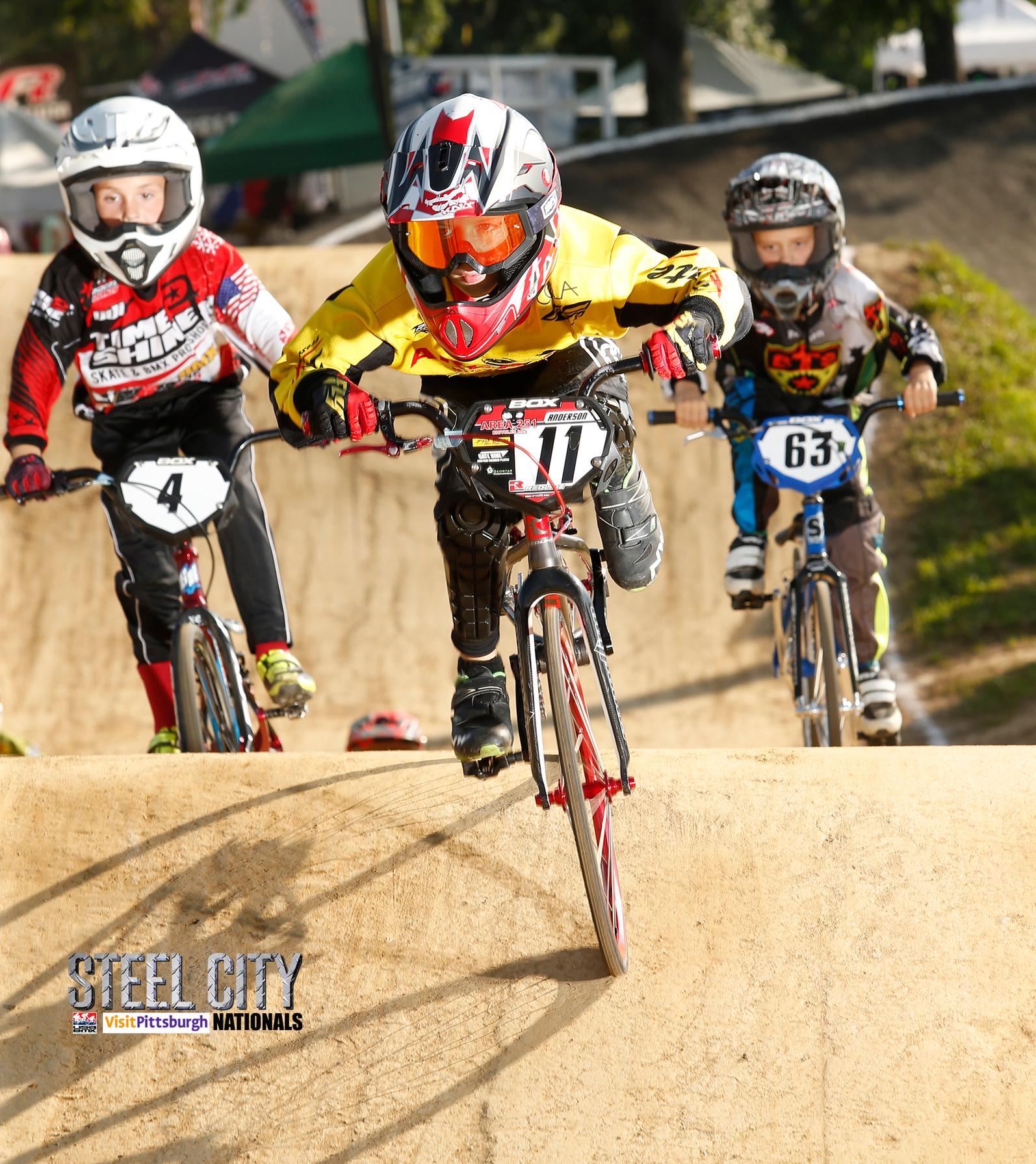 Previously, the annual trek to Southpark had been held over the 4th o' July and was called the Stars & Stripes - but for 2016, the date and name had been changed. It's now the Steel City Nationals - an appropriate name considering that ever other car in this town has some sort of Steeler logo on it and plenty of houses fly the Steeler's flag year-round. The new early-August date seemed to be good timing as well, as we were in for great weather all weekend (only a tad bit of rain over night, just to wet down the track). The one thing that hasn't changed, though - is super fast, totally gnarly race action on one of America's fastest and most famous BMX tracks!