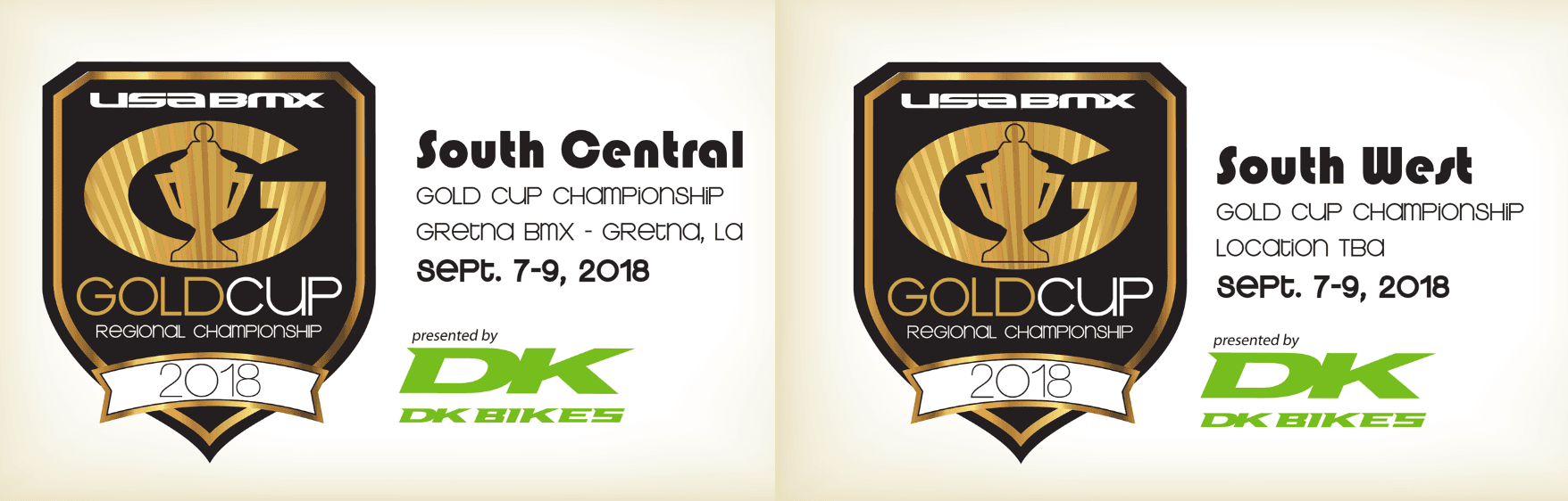 Here, for your early scheduling and planning, are the dates for the Gold Cup Championships in 2018 ...along with five of the six locations. Brought to you by DK Bicycles.