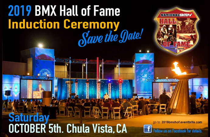 The entire BMX World is super excited for the 2019 Hall of Fame Ceremony, which will once again take place in Chula Vista, California - at the Elite Athlete Training Center, on Saturday night - October 5th. We hope to see you there!