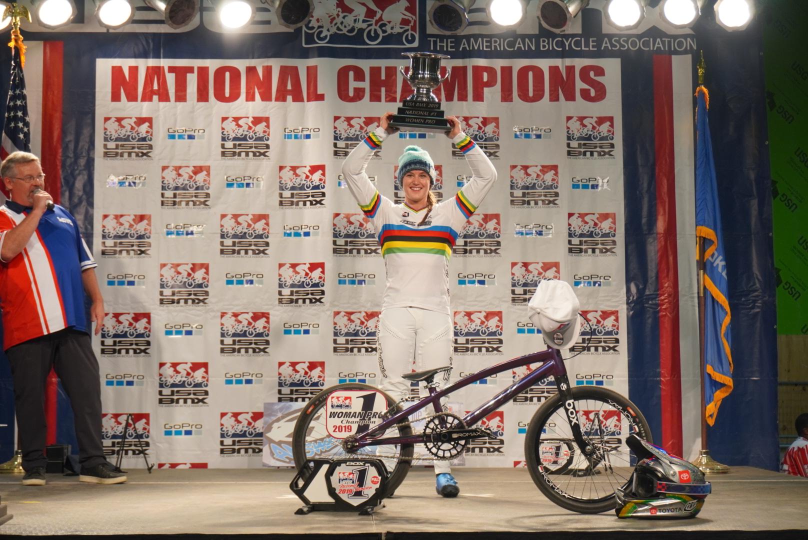 Willoughby’s dominance built upon her undefeated season in 2018 and her UCI World Championship crown earlier this year. Adding to her growing National No.1 Title record as the sports most decorated athlete, male or female, Willoughby now has three more National #1 Titles than Eric Rupe (who scored 9 during his illustrious BMX career). As Alise accepted her 12th National No.1 Pro plate, she remembered her first title as a 9 year old and thanked her dad and brothers who were both with her here in Tulsa tonight.