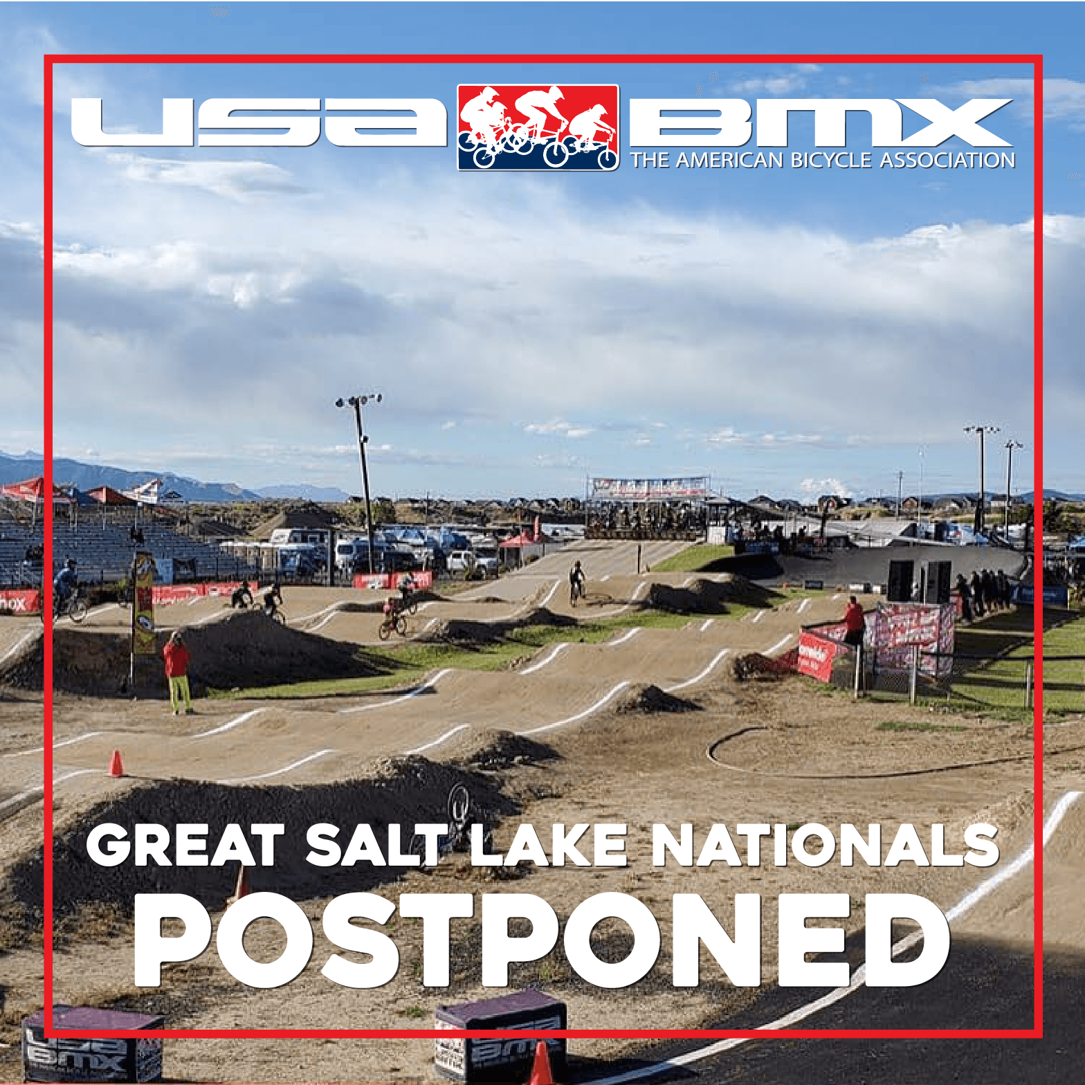 Due to the continuation of bans on crowd gatherings in Utah, USA BMX has postponed the Great Salt Lake Nationals - Salt Lake, UT (June 26-28) until a later date.