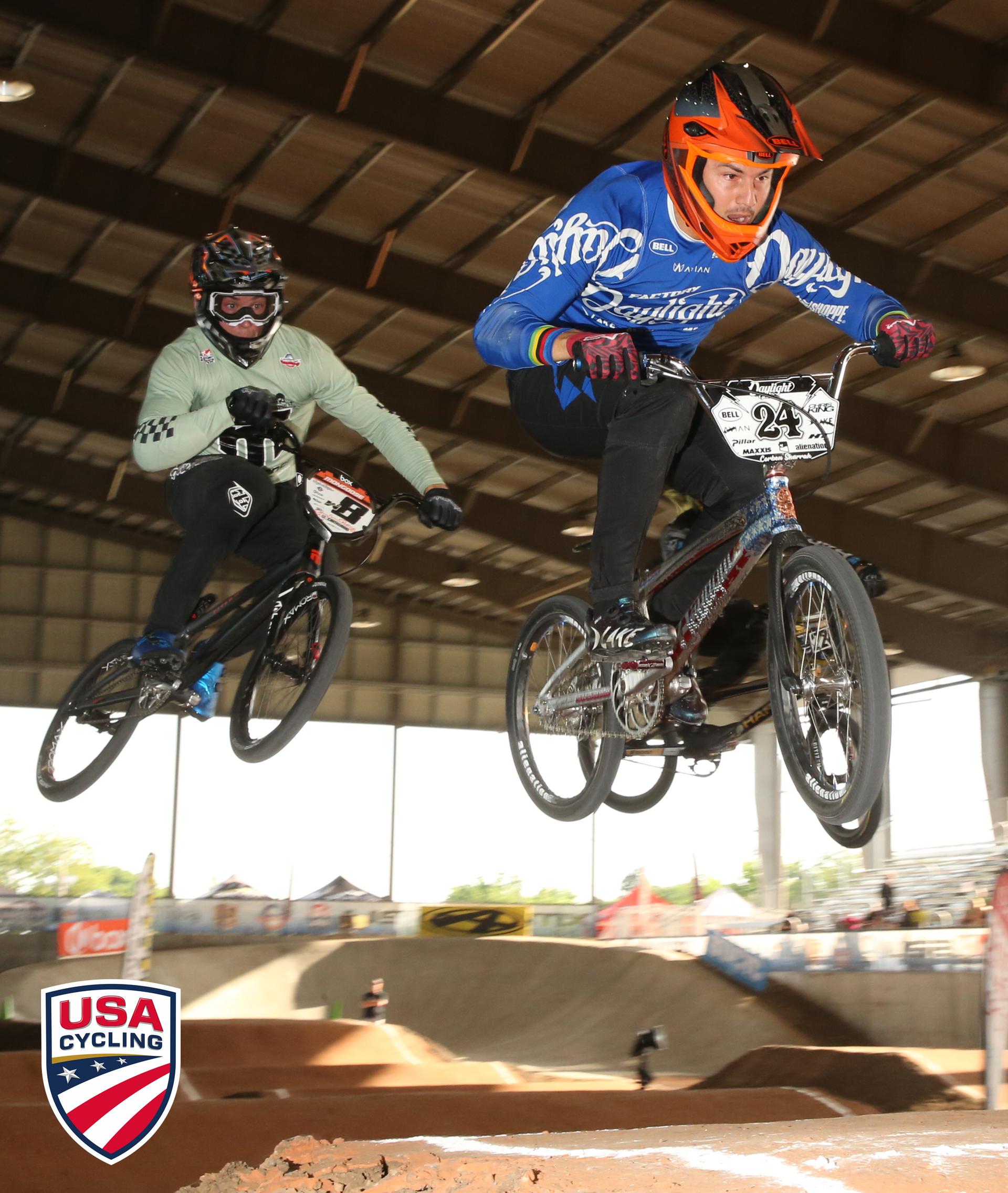 In the Women’s race, the Elites, U23s, and Juniors were all run in the same heat, but were scored in their respective categories. The battle was on between Daleny Vaughn (Tucson, Ariz.; DK Bicycles) and Felicia Stancil (Lake Villa, Ill.; Factory SSquared). Vaughn has been on fire since she won the Grand Nationals in November, while Stancil has been recovering from a dislocated hip and fractured femur from a race earlier in the year. This was Felicia's first race back from her injury - and it was great to see them racing elbow-to-elbow on the track. Stancil grabbed the holeshot, but Vaughn made the pass as they came out of turn one. The two were side by side the whole third straight, but Vaughn was able to create some distance to bring the stars-and-stripes sleeve home to Tucson, along with Sharrah.