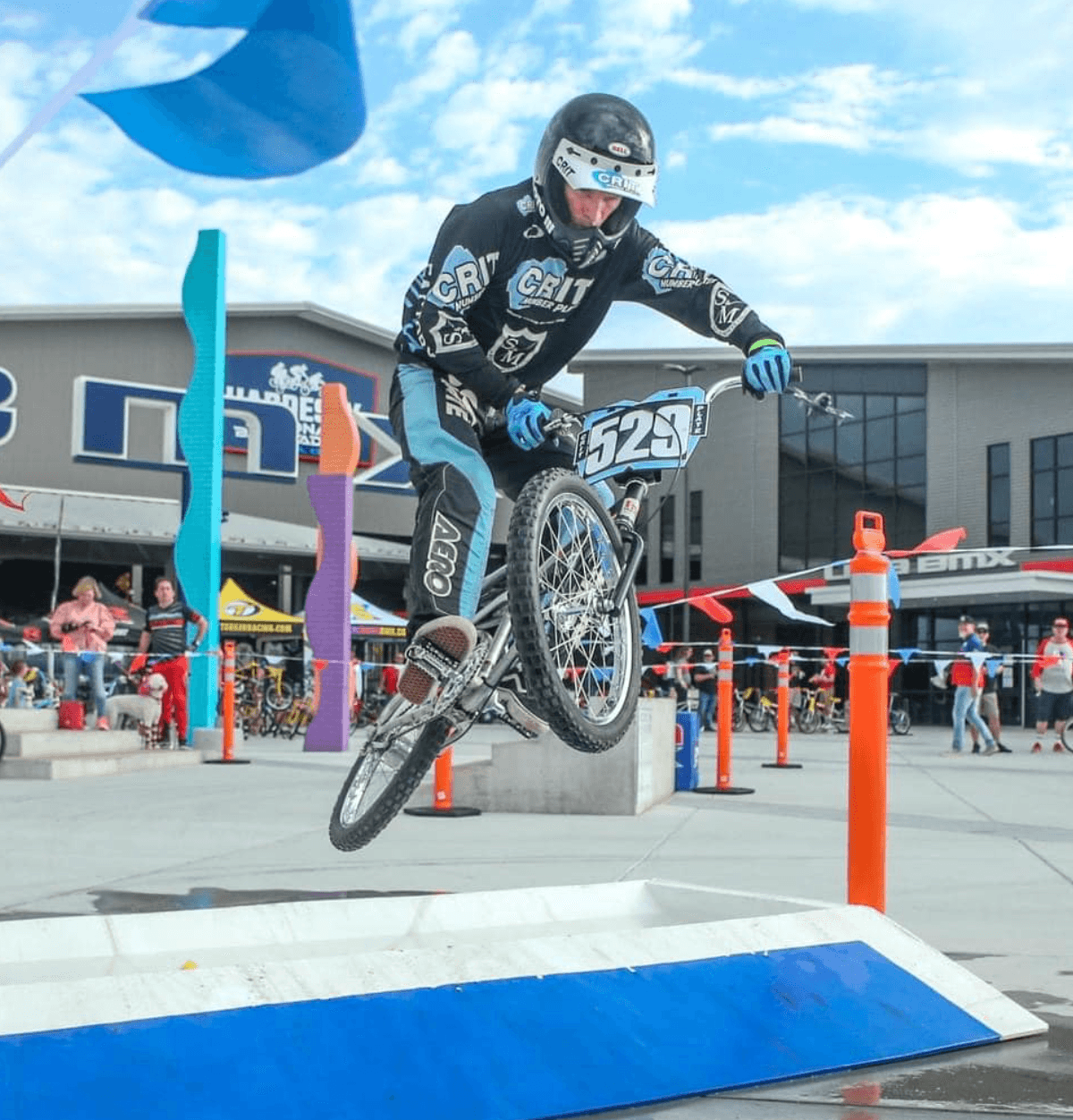 Mingling among the crowd were special guests - Hall of Famers Mike Dominguez and Harry Leary; both Diamondback legends. Scattered amongst the parking lot were tons of BMX icons and even some sweet classic BMX Vans - including Oklahoma's very own House of Wheels van, which is currently being restored by Kenneth O'Brien. Parked on the inside of turn two, the van doors were wide open with an impressive assortment of 8-tracks being cranked from the roof-mounted bullhorn speakers.