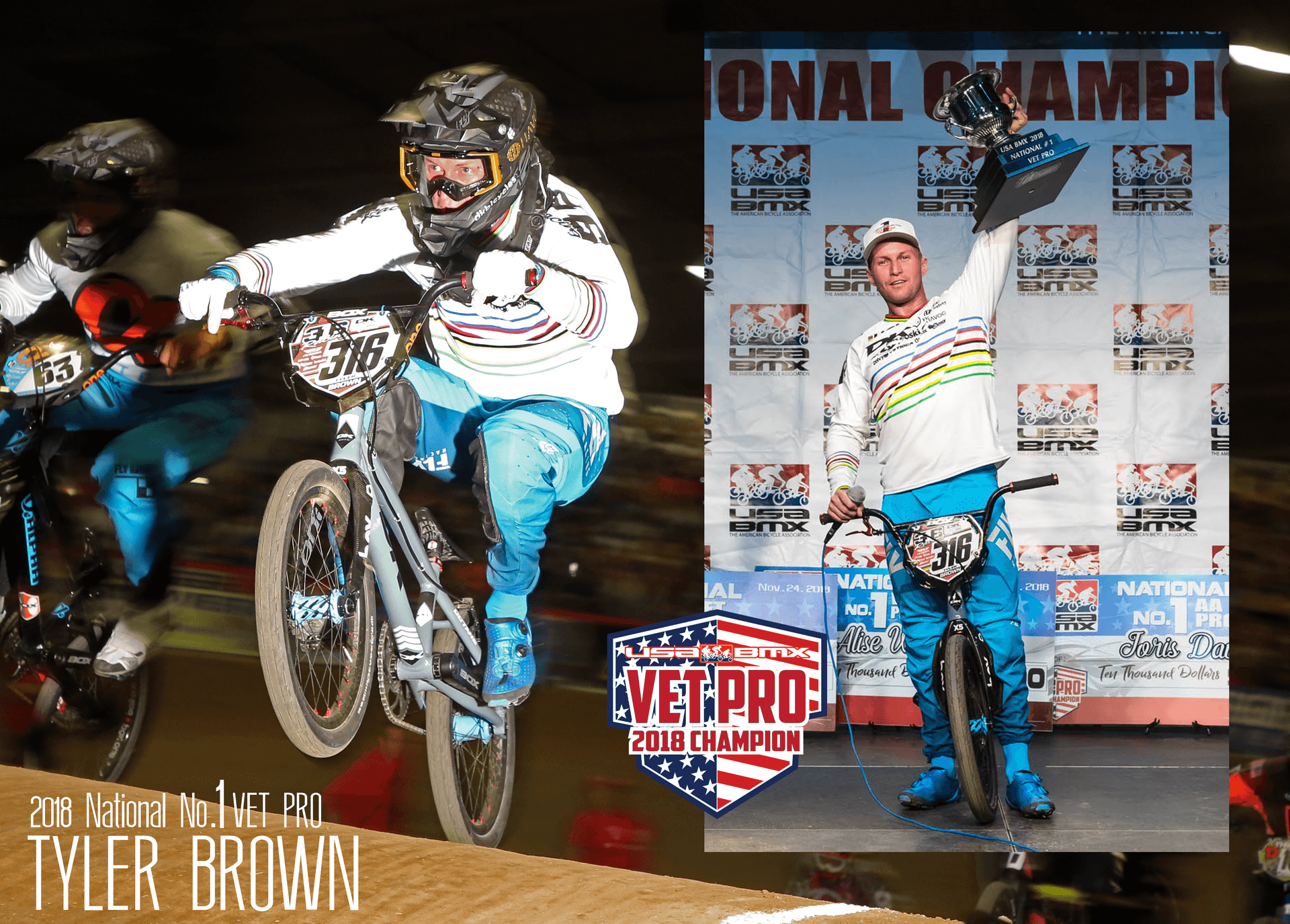 Vet Pro Men’s - In the Vet-Pro men’s class, three riders had been battling for supremacy all season long. Chula Vista, CA track operator, ‘Downtown’ Tyler Brown, Argentine’s Cristian Becerine, and Venezuela’s Jonathan “The Mosquito’ Suarez were all positioned to claim the National #1 Title. In what would be his last race before retiring, Becerine was looking for his fifth consecutive Vet Pro title. In the end, Brown was able to ride his way back to win each race on his way to the title where 2018 marked his first year as a Vet-Pro.
