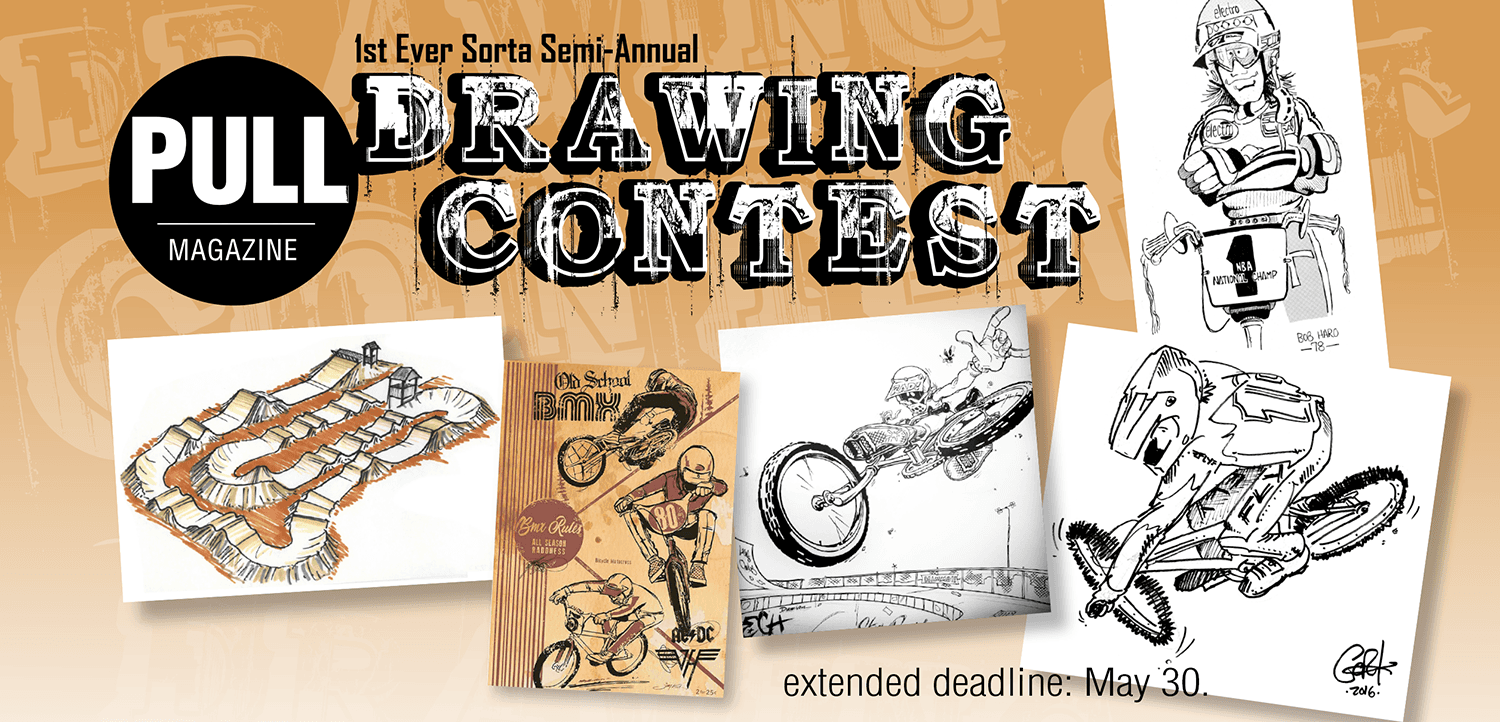 Contest deadline is end of May! The first-ever PULL Magazine BMX Drawing Contest is ON. It's open to all ages and skill levels - with a ton of cool prizes given in multiple categories.