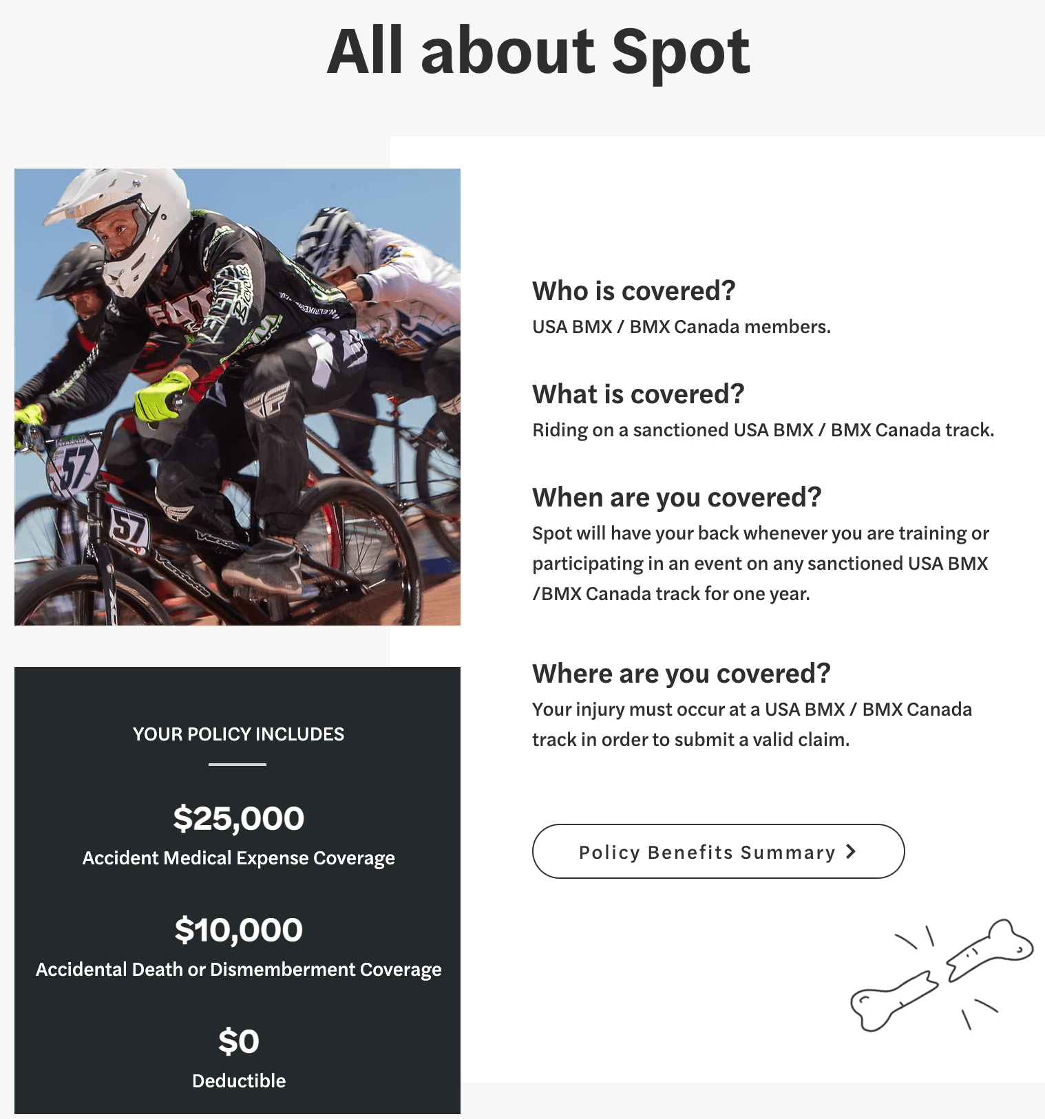 USA BMX and Spot Insurance Benefits have just re-upped with some improvements and changes to pricing. If you are not familiar with Spot, here is a quick explanation: