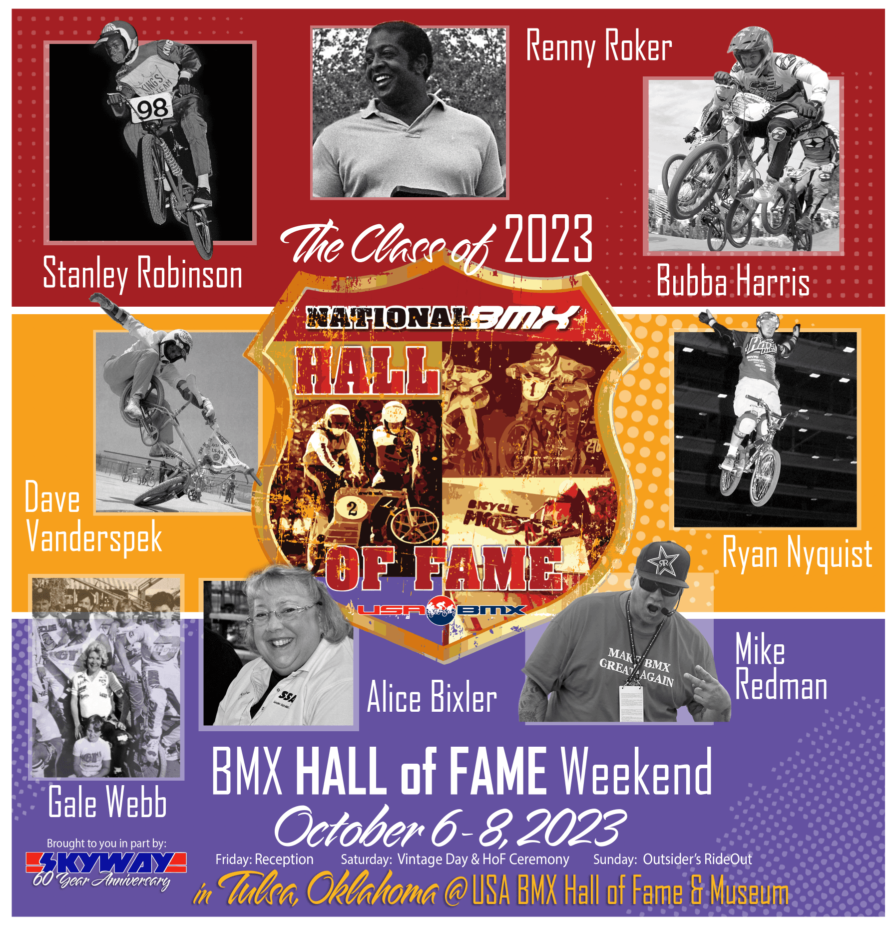 The annual BMX Hall of Fame, located at the newly opened USA BMX HQ in Tulsa, Oklahoma, is proud to announce the Class of 2023. This year's six inductees are joined by two additional Lifetime Achievement picks, who will be officially inducted over the Hall of Fame weekend of October 6-8.
